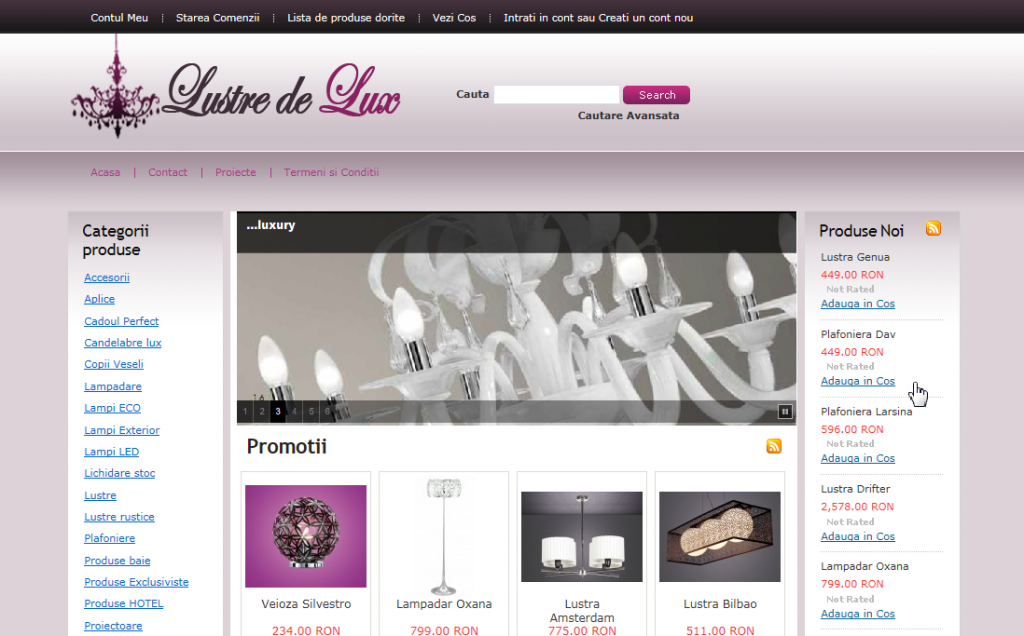 Realizare magazin online pentru lustre de lux: lustredelux.com